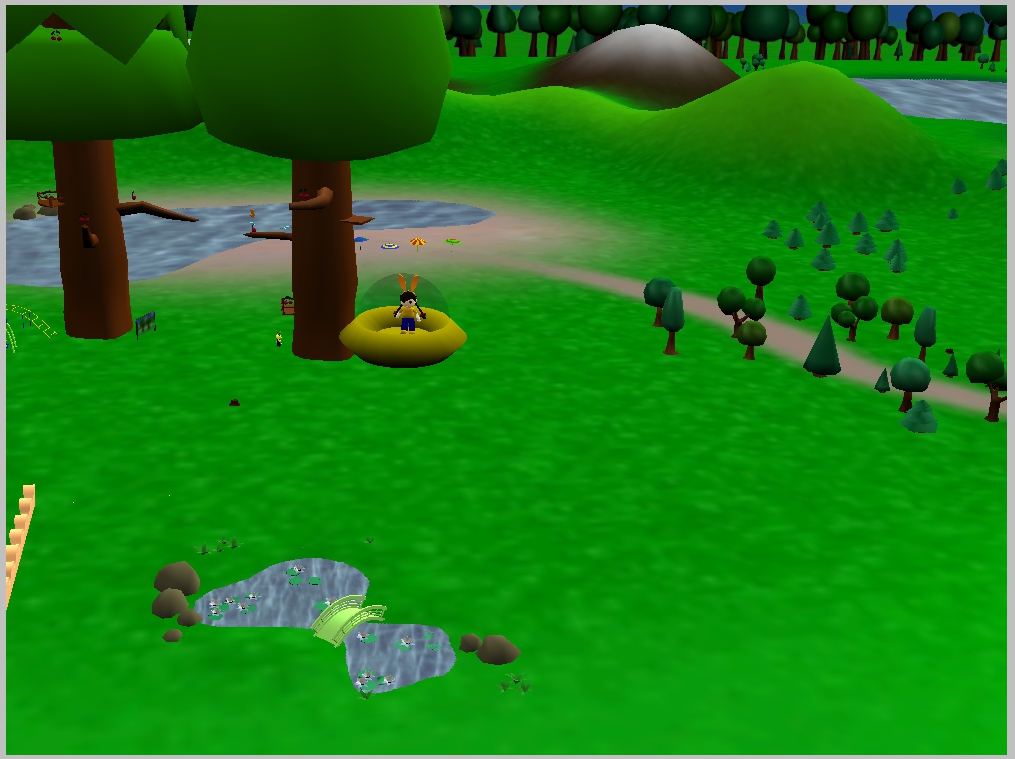 Внутри чата довольно разнообразная кастомизация аватара, множество вариантов одежды, волос, черт лица и аксессуаров. В основном в чате все было зелено и цветочно, но иногда окружающее пространство менялось на снег и новогоднюю елку или огромные деревья и гигантскую черепаху. В чатике есть один мини-квест «На крыше мира», его суть заключается в том, чтобы допрыгать до вершине дерева и собрать все 10 вишен. И тогда игрок спавнился в небе и падал вниз. Также игрокам были доступны качели с батутом, озеро с пляжем, летающая тарелка, снежные холмы, клетка с большим замком, для попадания в которую надо было совершить какой-то ритуал (это было так давно, что воспоминания об этом уже померкли) и прочая архитектура.