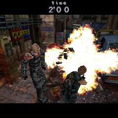 Очередной японский мобильный Resident Evil, основанный на 3 части серии. Проходим за Джилл Валентайн и Карлоса Оливейра. Короткие миссии с заданными условиями в полицейском участке и на улицах Раккун сити.
