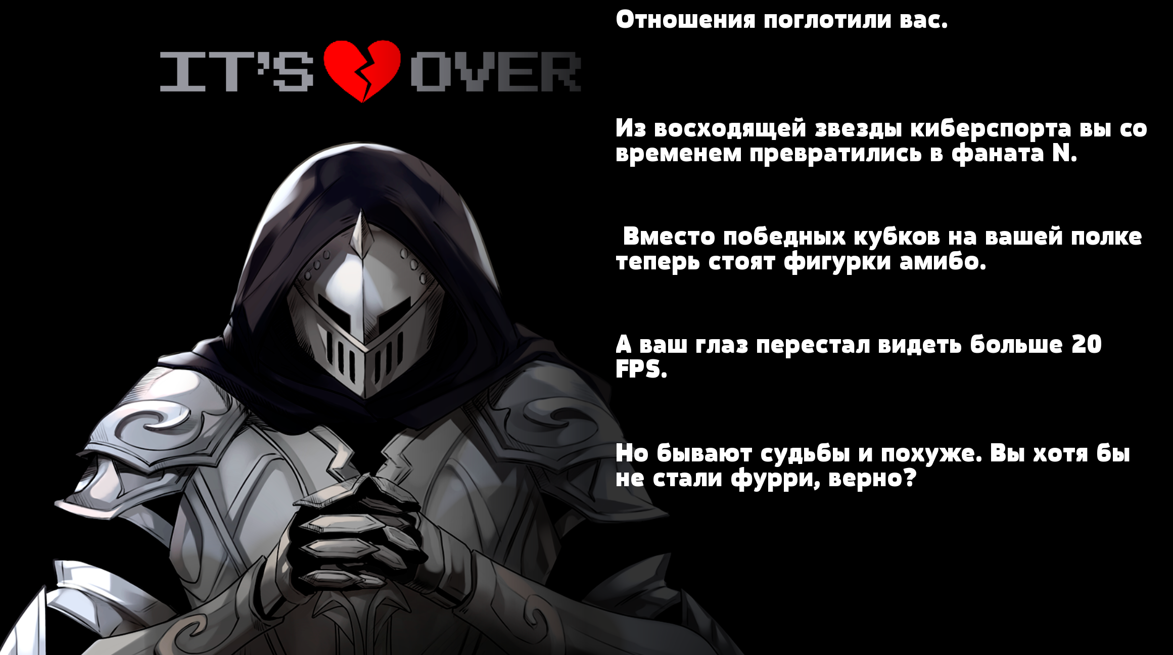 Вы играете за типичного геймера-анимешника, который пытается ходить на свидания, но постоянно отвлекается на уведомления о новых играх, стримах и аниме. Ваша задача — либо мастерски отбиваться от навязчивых поклонниц, либо… наконец-то сделать выбор в пользу реальной жизни (или не делать).