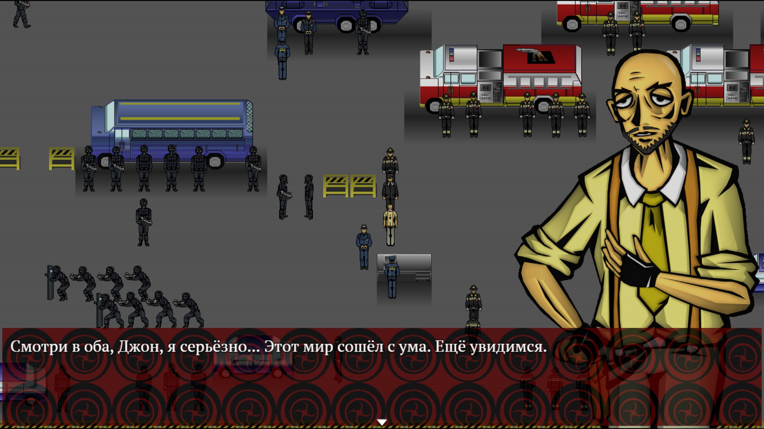 Если бы игру делали для какого-нибудь гейм-джема, то она вполне могла сойти за полноценное законченное произведение. А что, базовый замут есть, эстетика на месте, даже подраться есть с кем. Но в нашем случае это так не работает, и смерть главного, казалось бы, героя не способна даже пролог закончить. Так что знакомьтесь: Джон Ракун (хы, Иван Енот). Отставной «федерал» с искалеченной психикой, терзаемый ночными кошмарами и живущий в Бостоне. Надолго без работы он, впрочем, не остался, и к началу событий игры перешёл под крыло BSI, занимающейся расследованием дел с религиозным или паранормальным уклоном. Под таковыми подразумеваются не столько всякие сверхъестественные события, сколько любые ситуации, где перестают работать логика и причинно-следственные связи. На то, что Джон как-то связан с общим замутом с Изгнанником, намекают его сны, но пока игра предлагает просто наслаждаться творящейся фантасмагорией, пространными диалогами и нарастающим безумием.