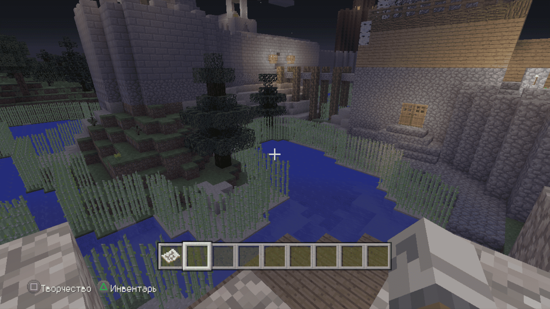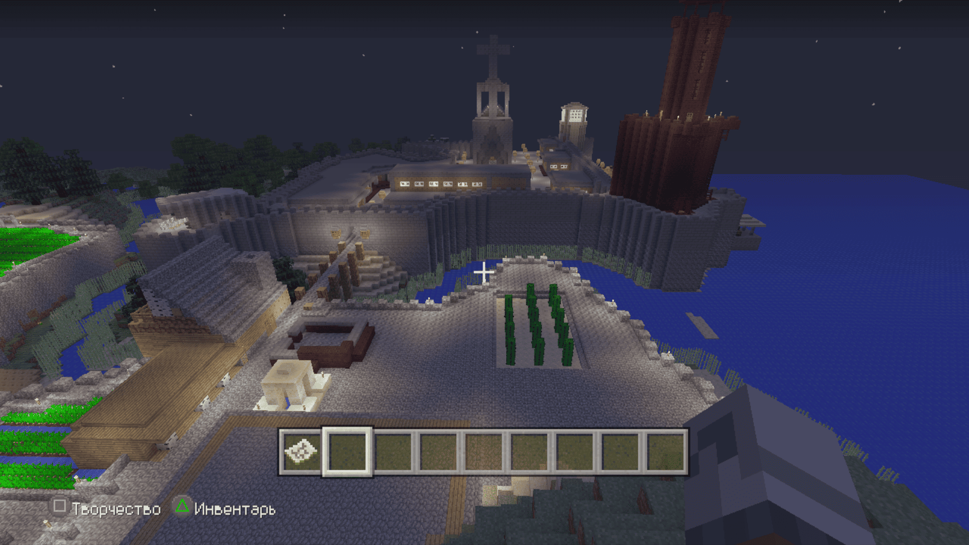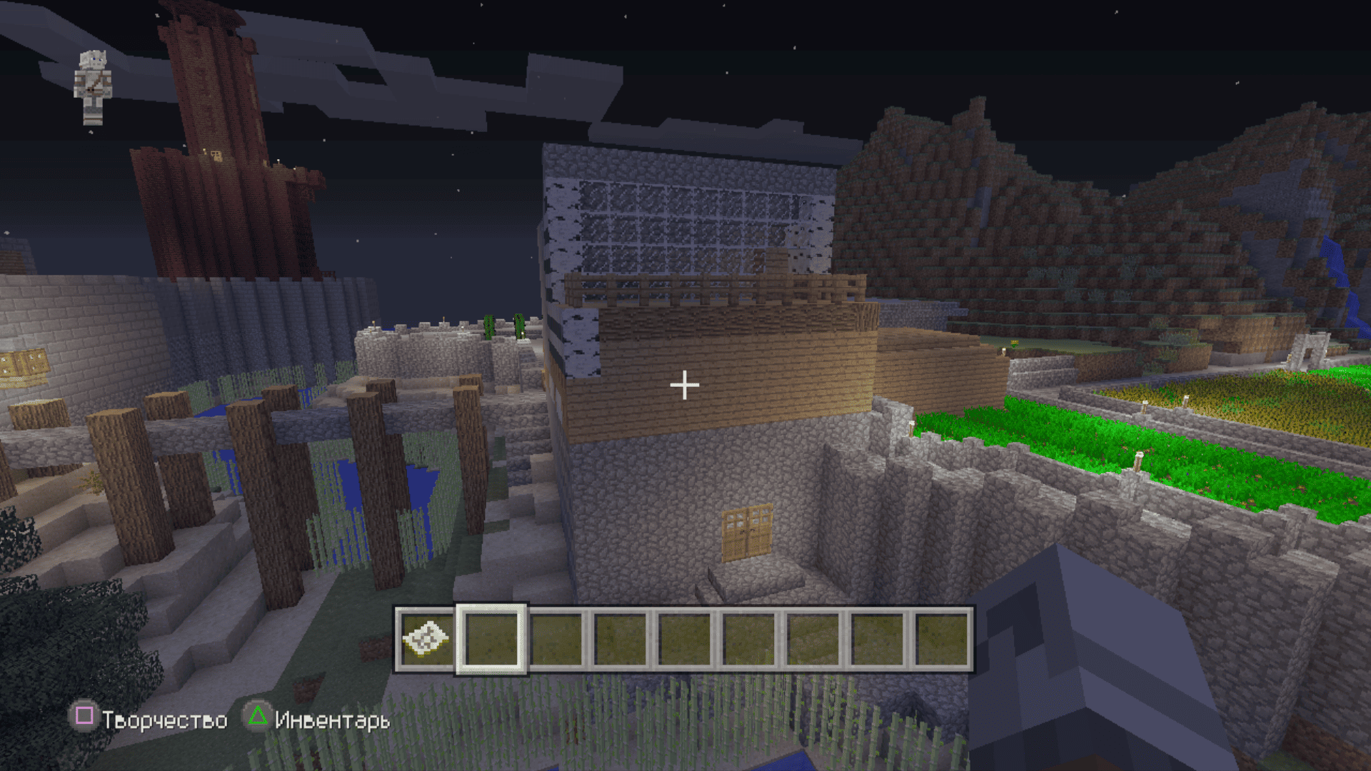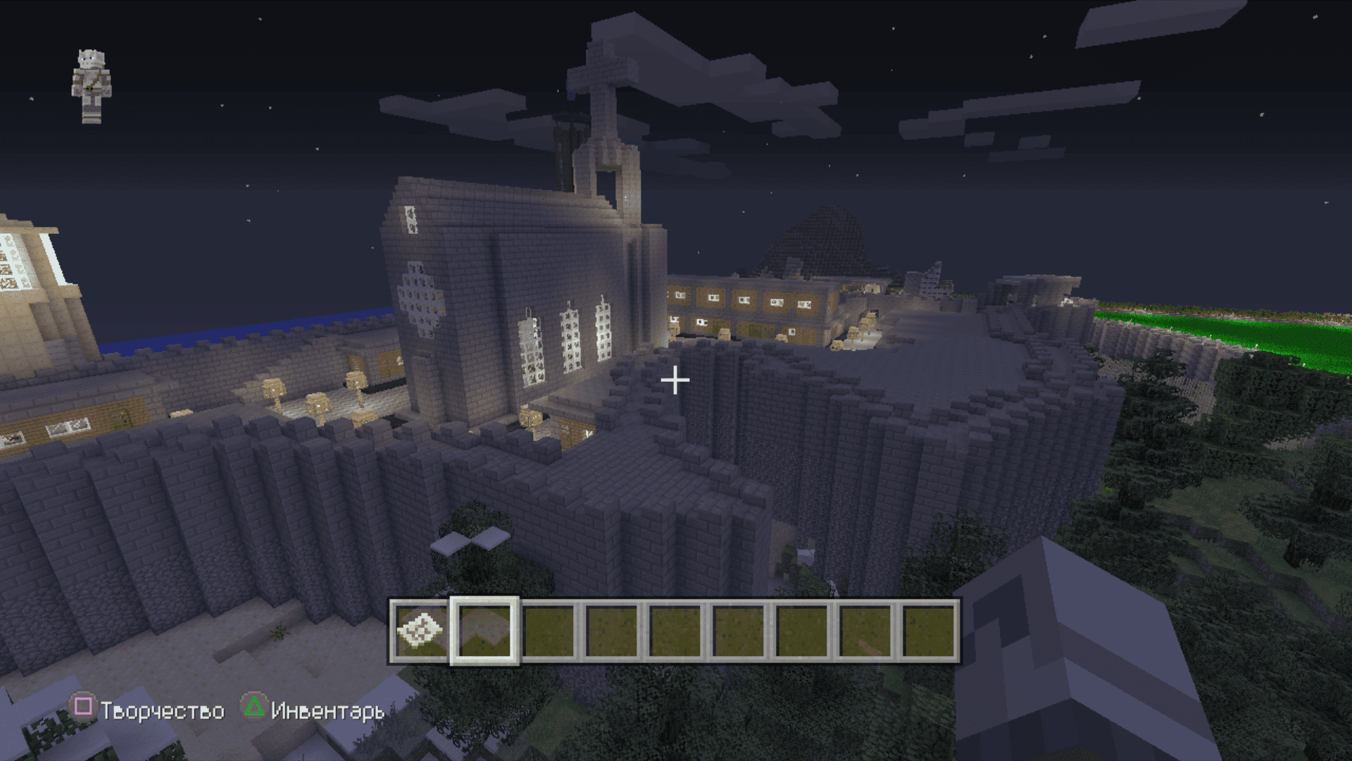 Я тут задушился больше не с добычи особых ресурсов, а с добычи обычного булыжника. Я сначала выложил общую форму, примерно предположил сколько понадобится камня и, примерно, по ощущениям, общее время пробытое в шахтах и котлованах составило где-то 3 реальных дня. По итогу осталось еще два больших сундука полного камня. Дефицит раза 4 наступал по дереву. За всё это время вырастил на пустыре рядом с крепостью смешанную рощу из елей и дубов, чтобы долго бегать никуда не приходилось.