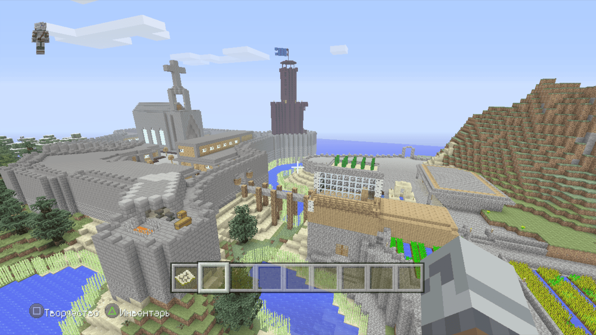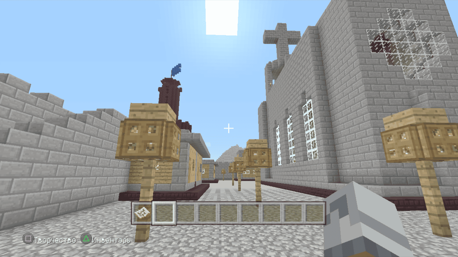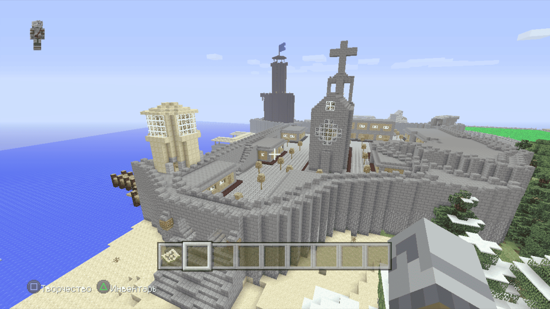 Я тут задушился больше не с добычи особых ресурсов, а с добычи обычного булыжника. Я сначала выложил общую форму, примерно предположил сколько понадобится камня и, примерно, по ощущениям, общее время пробытое в шахтах и котлованах составило где-то 3 реальных дня. По итогу осталось еще два больших сундука полного камня. Дефицит раза 4 наступал по дереву. За всё это время вырастил на пустыре рядом с крепостью смешанную рощу из елей и дубов, чтобы долго бегать никуда не приходилось.