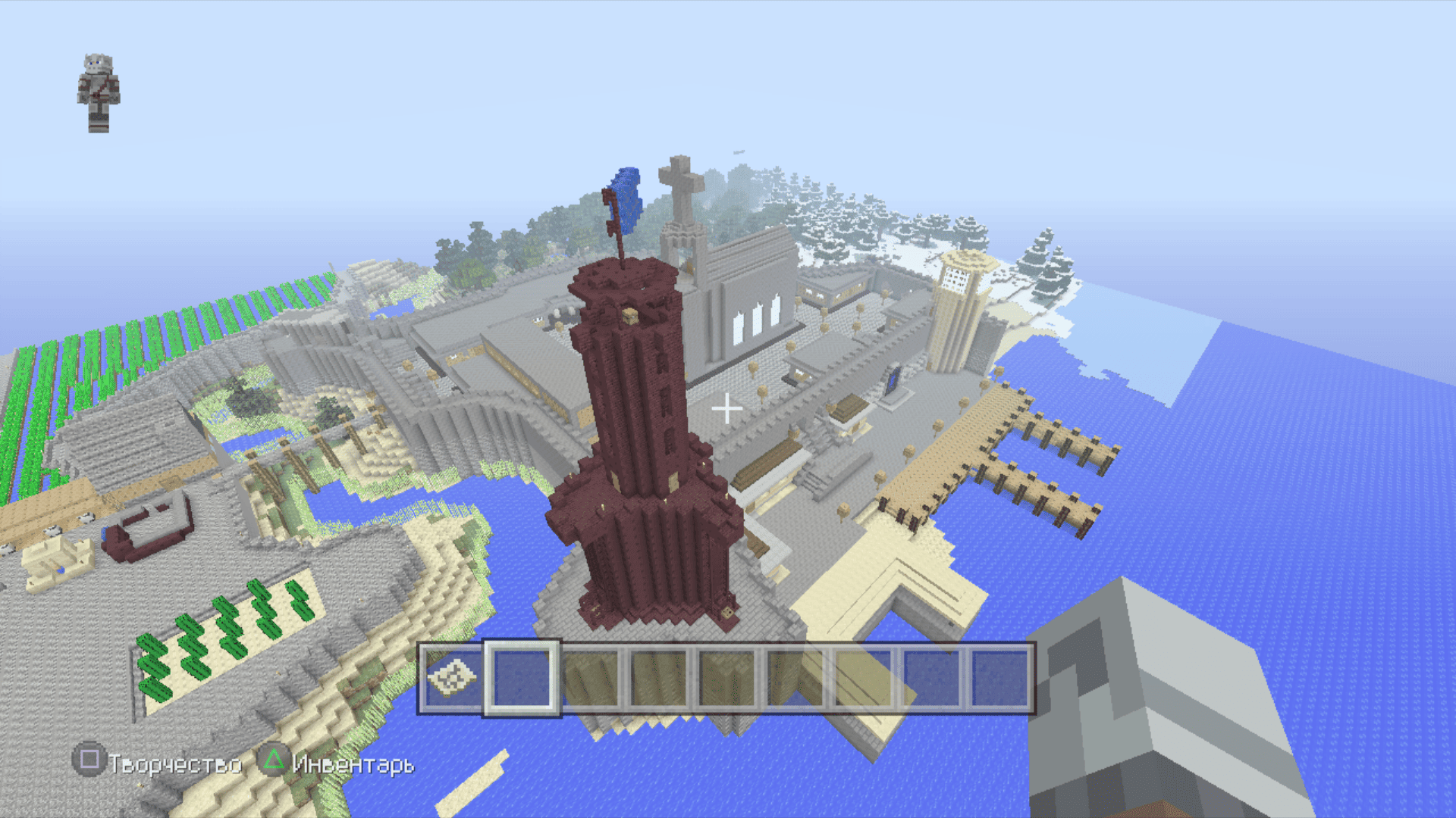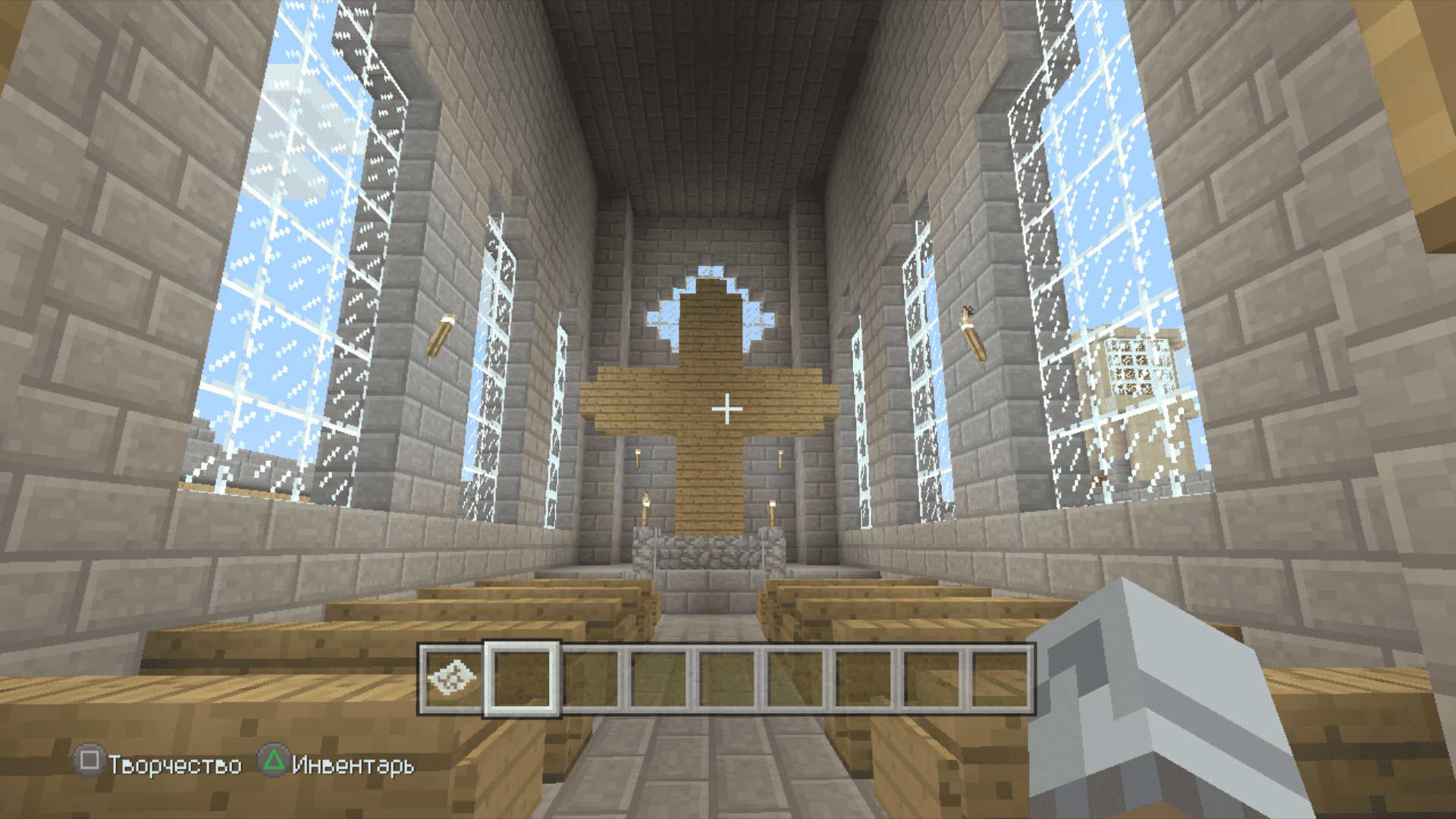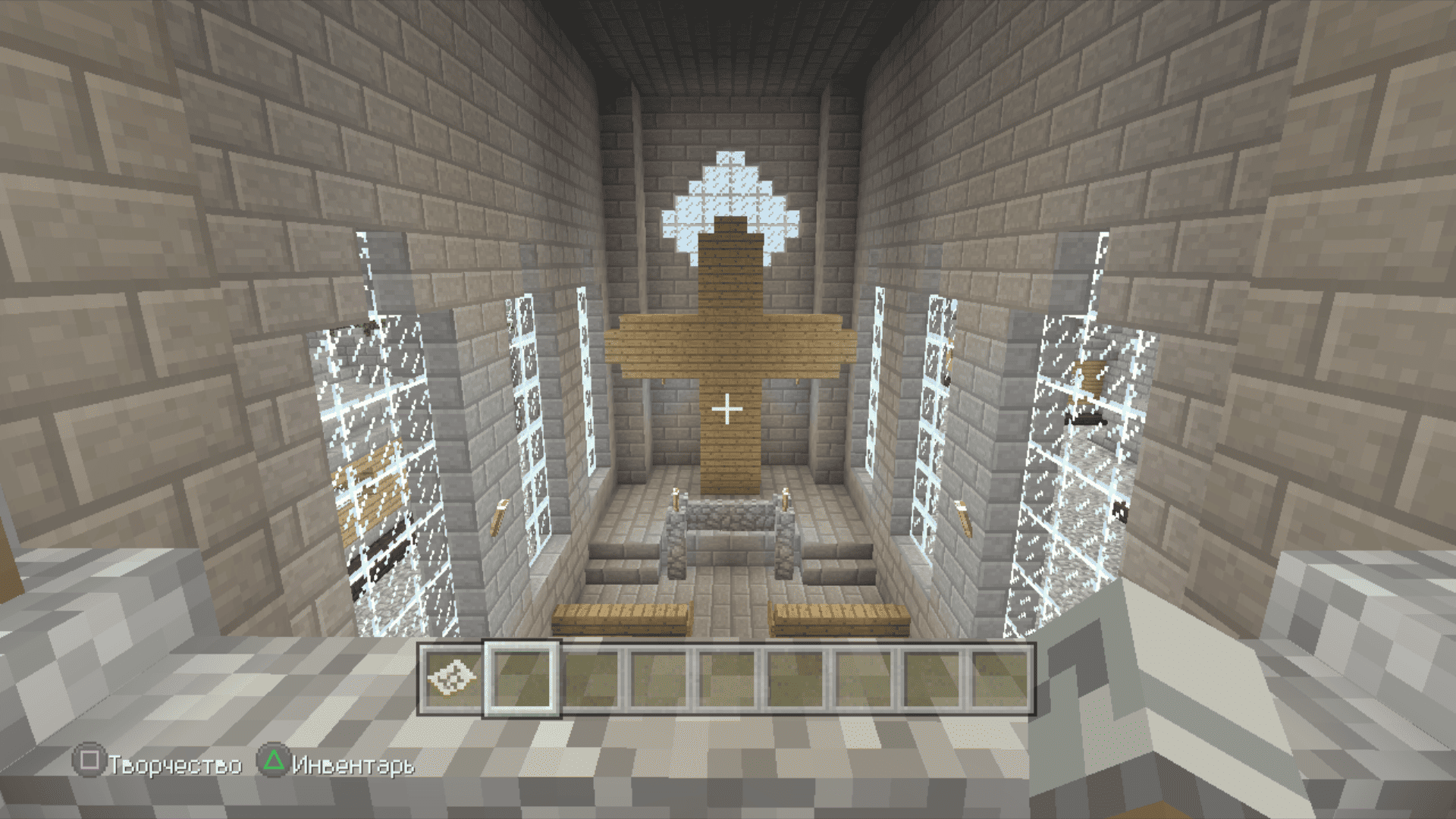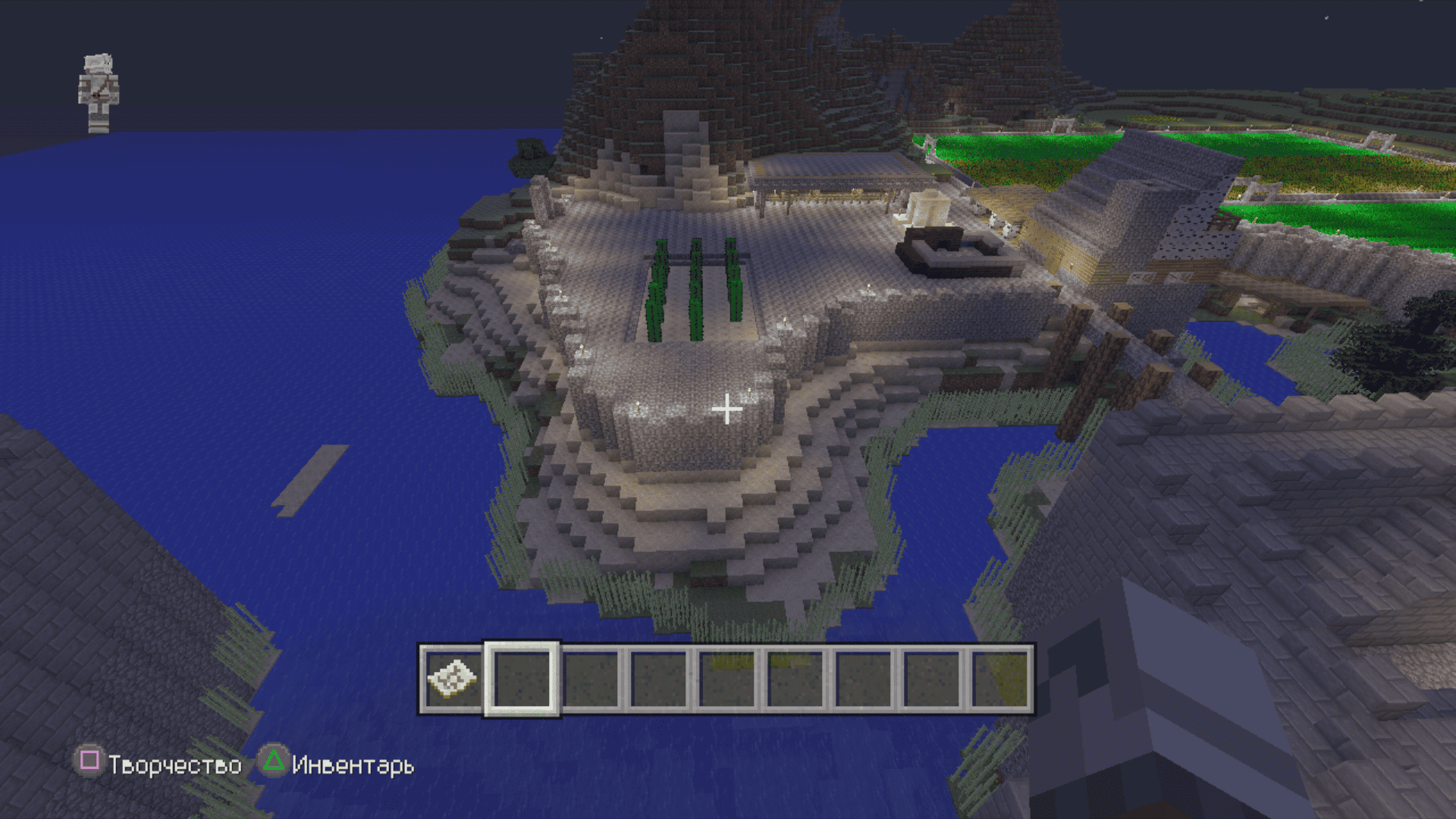 Я тут задушился больше не с добычи особых ресурсов, а с добычи обычного булыжника. Я сначала выложил общую форму, примерно предположил сколько понадобится камня и, примерно, по ощущениям, общее время пробытое в шахтах и котлованах составило где-то 3 реальных дня. По итогу осталось еще два больших сундука полного камня. Дефицит раза 4 наступал по дереву. За всё это время вырастил на пустыре рядом с крепостью смешанную рощу из елей и дубов, чтобы долго бегать никуда не приходилось.