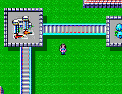 Ощущение полной вседозволенности является главной фичей первой части культового сериала. Представьте, что Вы начали проходить Final Fantasy IX: Вы сбежали из Александрии с принцессой на борту, выбрались в целости и сохранности из Леса Зла и тут Вам внезапно дают летающий корабль и говорят: «летите теперь, дорогие, куда хотите.» Нечто подобное произошло в Phantasy Star: собрав команду в лице силача Тайлона, пушистого талисмана по имени Мяу и крутого мага Лутца, Алиса выполняет последний «рельсовый» квест и получает за него собственный космический корабль, позволяющий совершать перелёты на любую из трёх планет. «Где подвох?» — спросите Вы. Подвох заключается в том, что на посудине нельзя просто так летать над поверхностью планеты и свободно приземляться в любой точке земного шара, посему героям всё равно придётся перемещаться на своих двоих. И тут начинаются первые серьёзные проблемы с ориентацией в пространстве. Если меня сейчас спросить: «как ты проходил Phantasy Star?», то я отвечу, что ничего не понимал, шёл наугад и при этом как-то умудрялся прогрессировать. Самое главное, что надо делать в игре — это общаться с жителями других городов. С монстрами тоже надо иногда общаться, но к этому мы позже вернёмся. Только от NPC Вы сможете получить представление о том, что делать дальше, узнать о существовании определённых предметов, их возможном применении и примерном нахождении. Это приводит к необходимости постоянно возвращаться на уже посещённые локации и изучать их по второму кругу с учётом полученной ранее информации. Ситуация усугубляется ещё и тем, что названия городов, башен и прочих достопримечательностей планет солнечной системы Алго самой игрой сообщаются очень неохотно и только из уст мимо проходящих жителей, из-за чего порой очень трудно бывает понять, куда именно Вас посылают гражданские, упоминая о каком-либо городе или очень важном артефакте в таком-то подземелье. Если же просуммировать всю получаемую от неиграбельных персонажей информацию, то можно составить такой план прохождения игры: