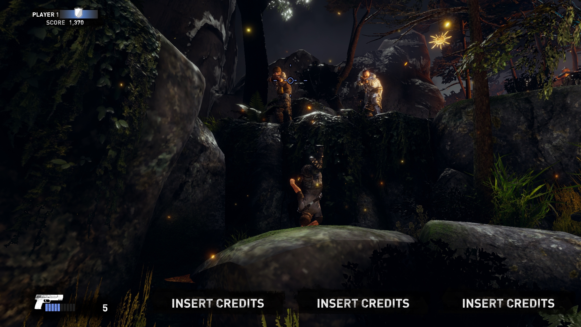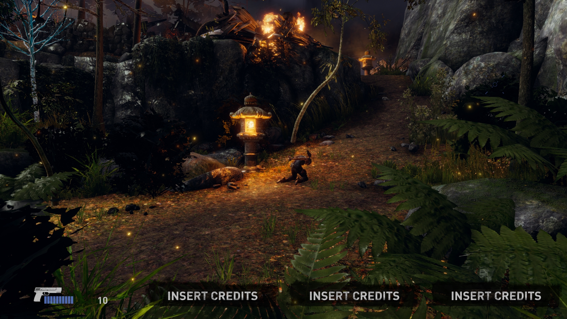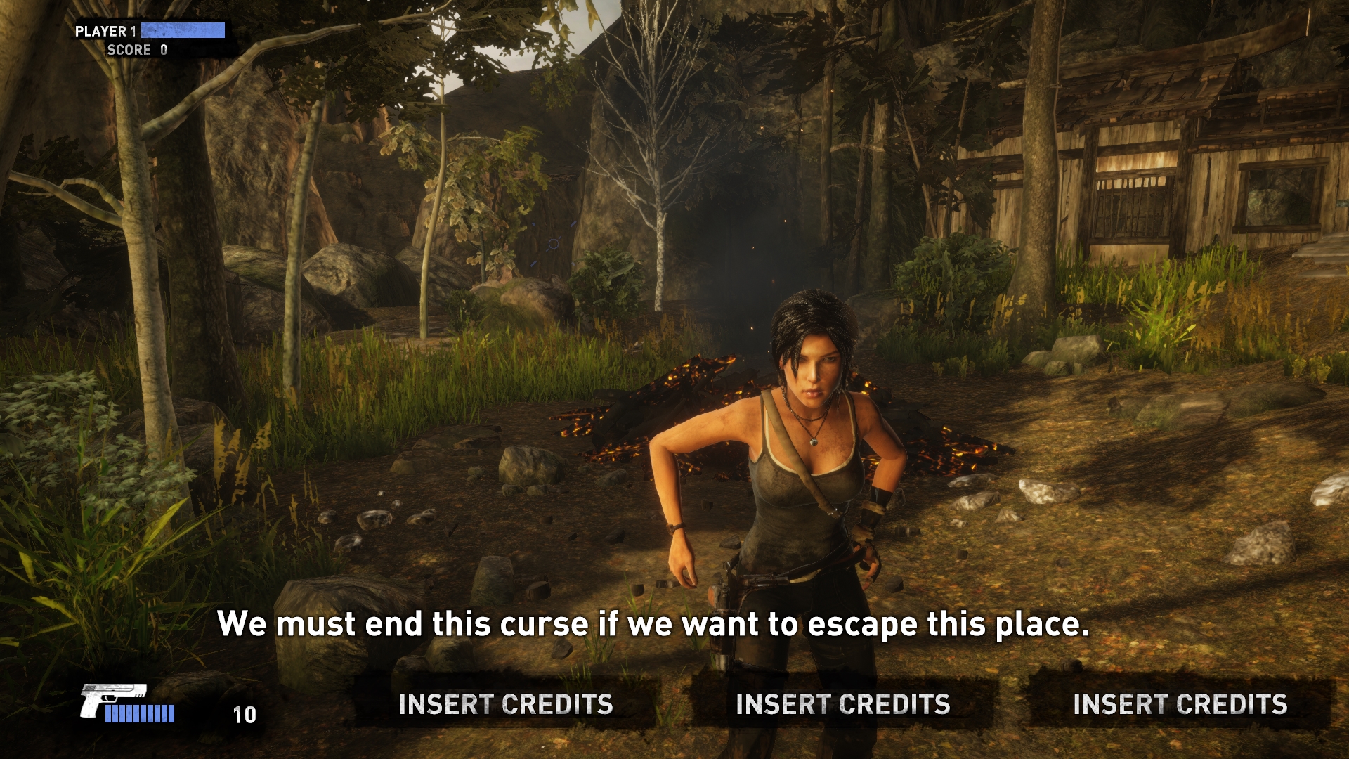 Автомат поддерживал до четырёх игроков одновременно, играем внезапно не за саму Лару, но за неких безымянных статистов её сопровождающих, вопросы относительно логики задавать не стоит. Полноценную и немаленькую сюжетную кампанию оригинала здесь ужали до трёх глав, и в целом происходящее похоже на краткую, местами довольно вольную выжимку основной игры.